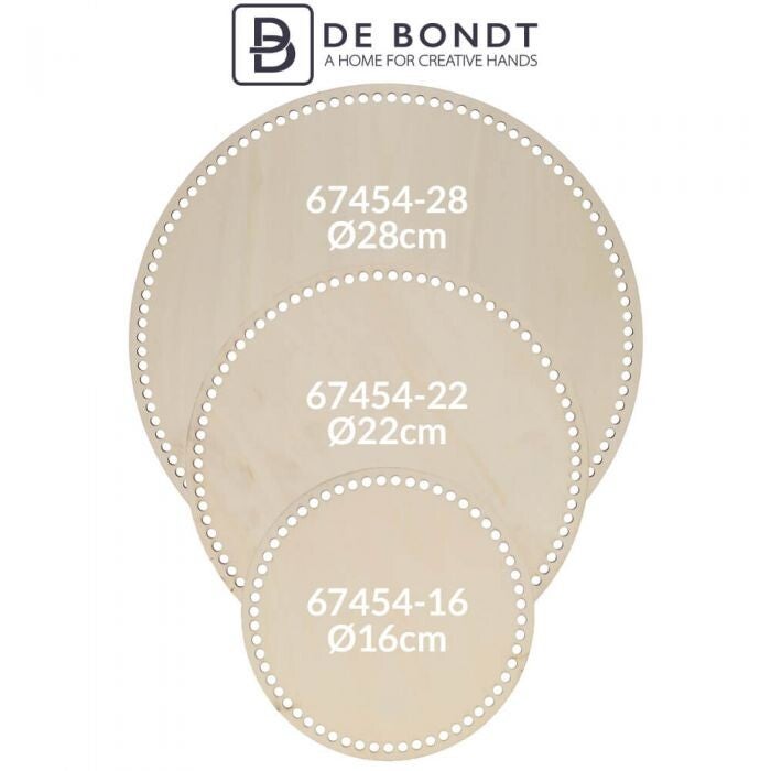 Verstevig uw handgemaakte tassen met deze prachtige ronde, houten tasbodems! Dankzij de 5mm grote perforaties aan de rand van deze tasbodems kunt u uw haak-, brei- of naaiwerk aan de bodem bevestigen. De tasbodems zijn verkrijgbaar in diverse maten met 16, 22 of 28cm doorsnee.