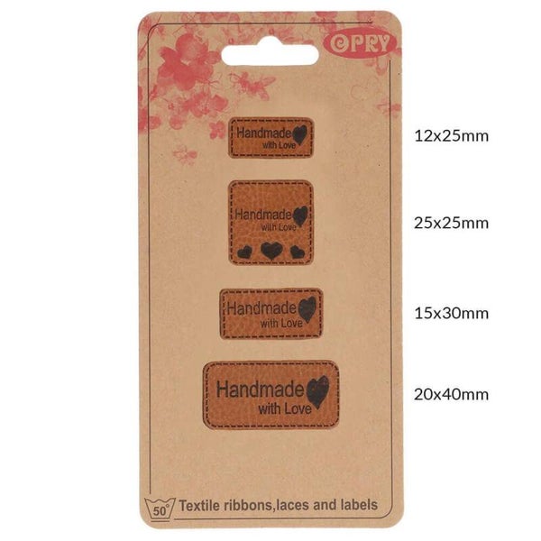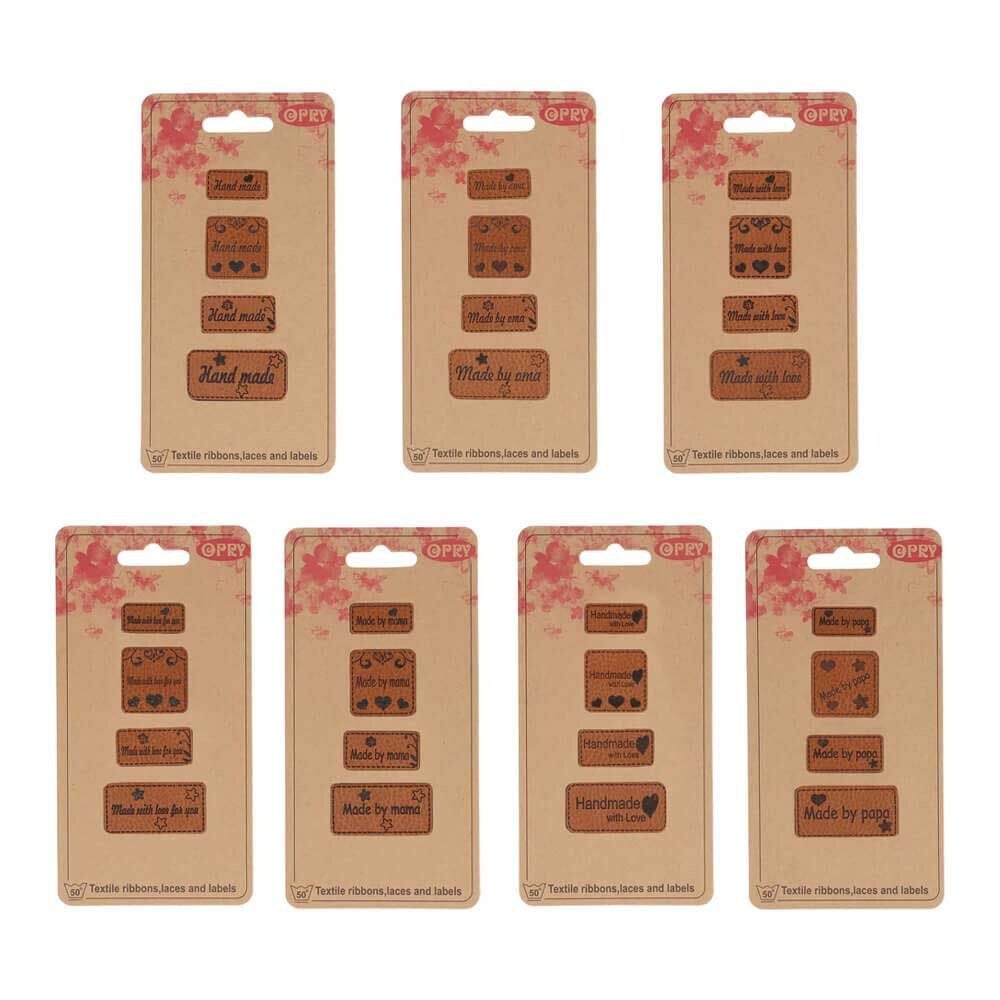 Met zo’n trendy label van imitatieleer geeft u een gebreide, gehaakte of genaaide trui, vest, tas of zelfgemaakt cadeautje een persoonlijk tintje en een unieke uitstraling. Er zijn verschillende teksten verkrijgbaar, zoals handmade, made with love, made by mama, made by papa en made by oma. Het label is van extra soepel skaileer gemaakt zodat het makkelijk vastgenaaid kan worden.