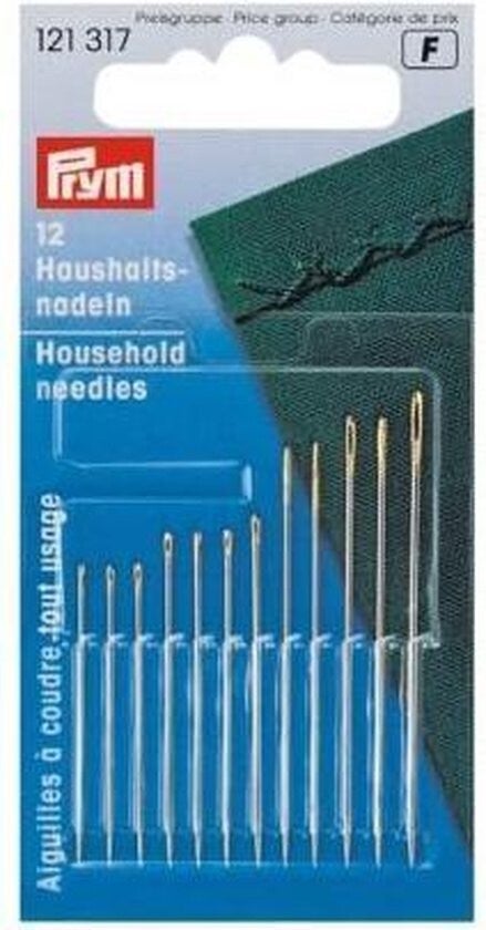 Prym Huishoudnaalden zijn een naaldassortiment bestaande uit 12 handnaaldnaalden en stopnaalden. Ze zijn gemaakt van gehard staal. De naalden kunnen worden gebruikt voor alle naai- en stopprojecten. Het is de perfecte set naalden voor elk huishouden!