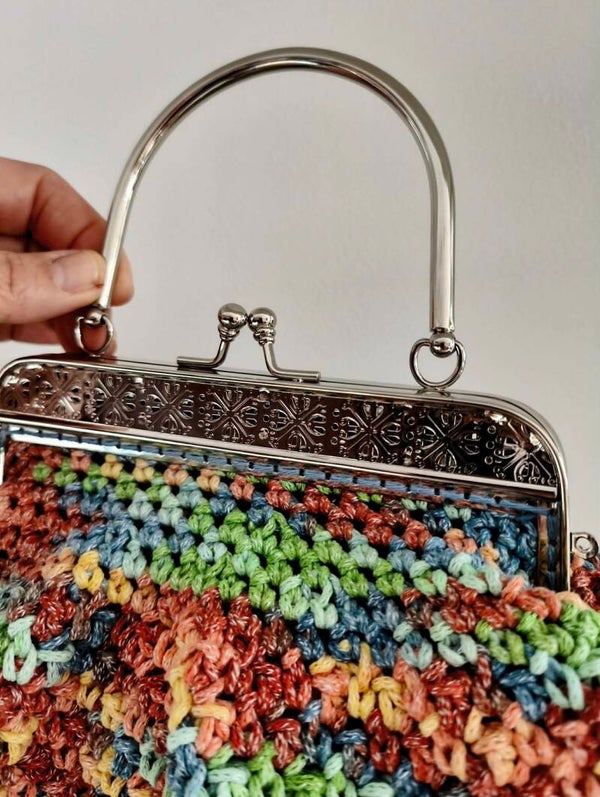 Dit is een digitaal patroon om dit handtasje zelf te haken, je hebt hiervoor de eco vita garen nodig en de tasbeugel van 18cm, materiaa is terug te vinden in de webshop.