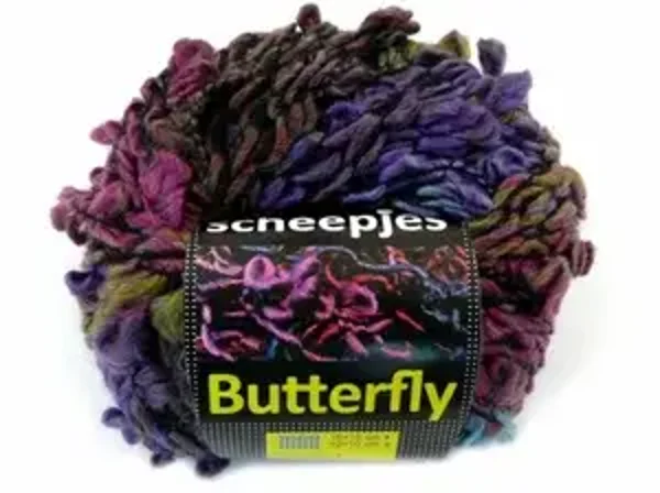 Scheepjes Butterfly is gemaakt van 80% Acryl en 20% Wol. Dit Bulky garen kan worden gebruikt voor het maken van accessoires zoals sjaals en mutsen, kleding en woningdecoratie. Een bol Scheepjes Butterfly weegt 100 gram, heeft een looplengte van 80 meter en is geschikt voor pendikte 7 mm. Verkrijgbaar in diverse kleurencombinaties.