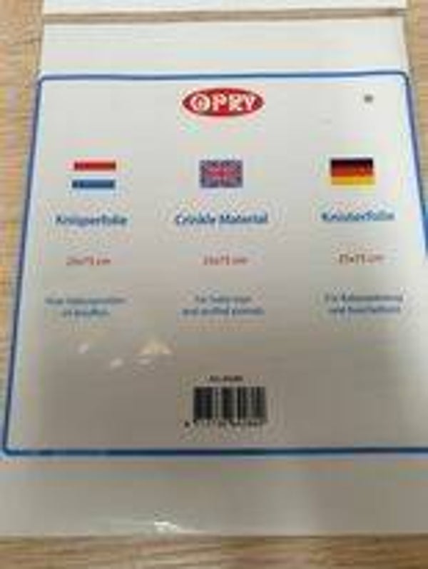 opry knisperfolie 25 op 75cm. Je kan deze verwerken in gehaakte boekjes of knuffeldoekjes.