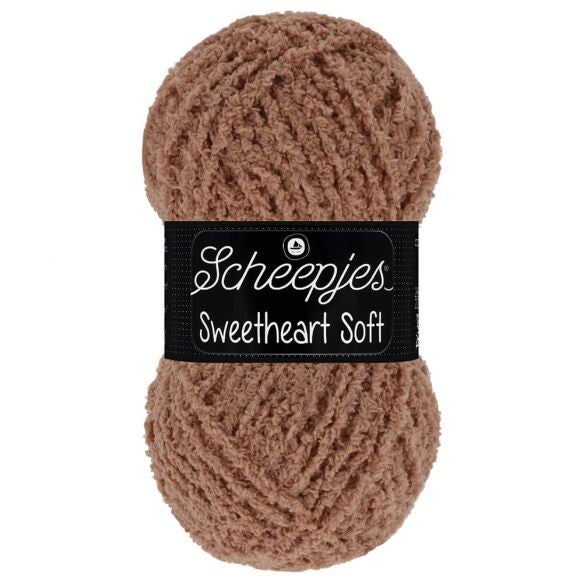 Scheepjes Sweetheart Soft is een fluweelzacht textuurgaren dat bij uitstek geschikt is voor het haken of breien van knuffeldieren en zachte dekens, maar bijvoorbeeld ook om truien, vesten, handschoenen of mutsen een kraag of manchet van ‘bont’ te geven. Het garen is gemaakt van 100% polyester en is hypoallergeen, lichtgewicht en fluweelzacht. Kortom heerlijk om te dragen, te knuffelen of mee te spelen. Verkrijgbaar in diverse mooie gedempte tinten. Sweetheart Soft is uitstekend te combineren met de subtiel gemêleerde tinten van Sweetheart Soft Brush. Een bol Scheepjes Sweetheart Soft weegt 100 gram en heeft een looplengte van 153 meter (garendikte Chunky). De aanbevolen naalddikte is 5.00-6.00mm.
