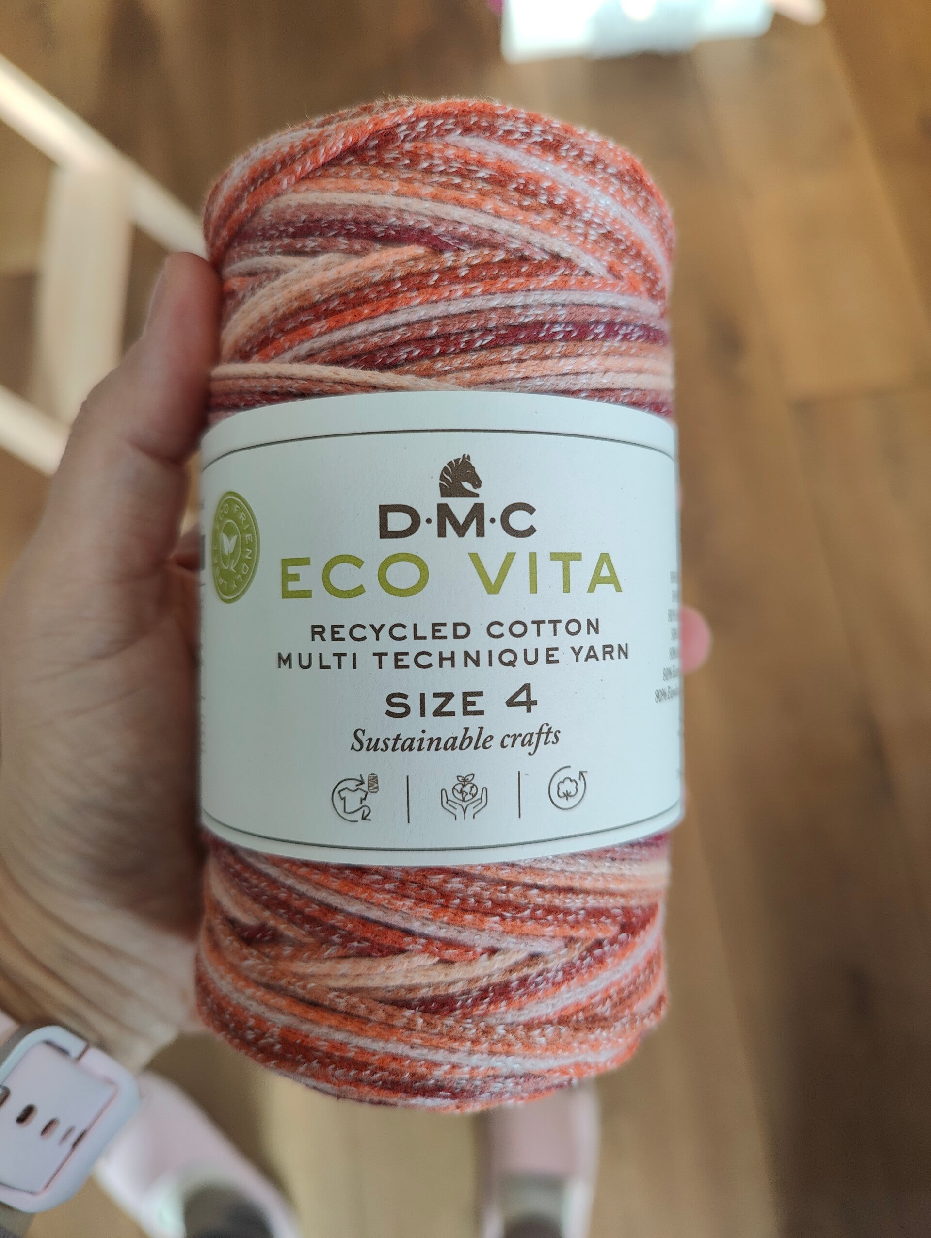 Het nieuwe garen Nova Vita nr. 4 van DMC is net als het dikkere Nova Vita nr. 12 gemaakt van gerecycled textiel. Dat is goed voor het milieu en geeft u bovendien de gelegenheid om nog meer leuke woon- en modeaccessoires te maken. Nova Vita wordt gemaakt van textielafval dat gemalen, geverfd en opnieuw wordt gesponnen. Daarnaast heeft het garen een gerecyclede verpakking en stopt u de banderol in de grond in plaats van die weg te gooien – de banderol is namelijk zaadpapier (of groeipapier) waarmee plantjes en dus nieuw leven kunnen worden gekweekt. Het koordgaren heeft een doorsnee van 2.50-3.00mm en bestaat uit een geweven omhulsel rond een dunnere draad die het zijn stevigheid geeft. Het is bij uitstek geschikt voor het haken, breien of macrameeën van woon- en modeaccessoires, zoals tassen, placemats, kussens, lampenkappen of plantenhangers. Verkrijgbaar in 12 unikleuren en 6 multicolour tinten. Nova Vita nr. 4 is samengesteld uit 80% gerecycled katoen en 20% polyester en heeft het OEKO-TEX® Standard 100 keurmerk. Wasbaar tot 30ᵒC. De aanbevolen naalddikte voor breien is 5.00mm en voor haken 4.00mm. Een bol Nova Vita nr. 4 weegt 250 gram en heeft een looplengte van 200 meter.